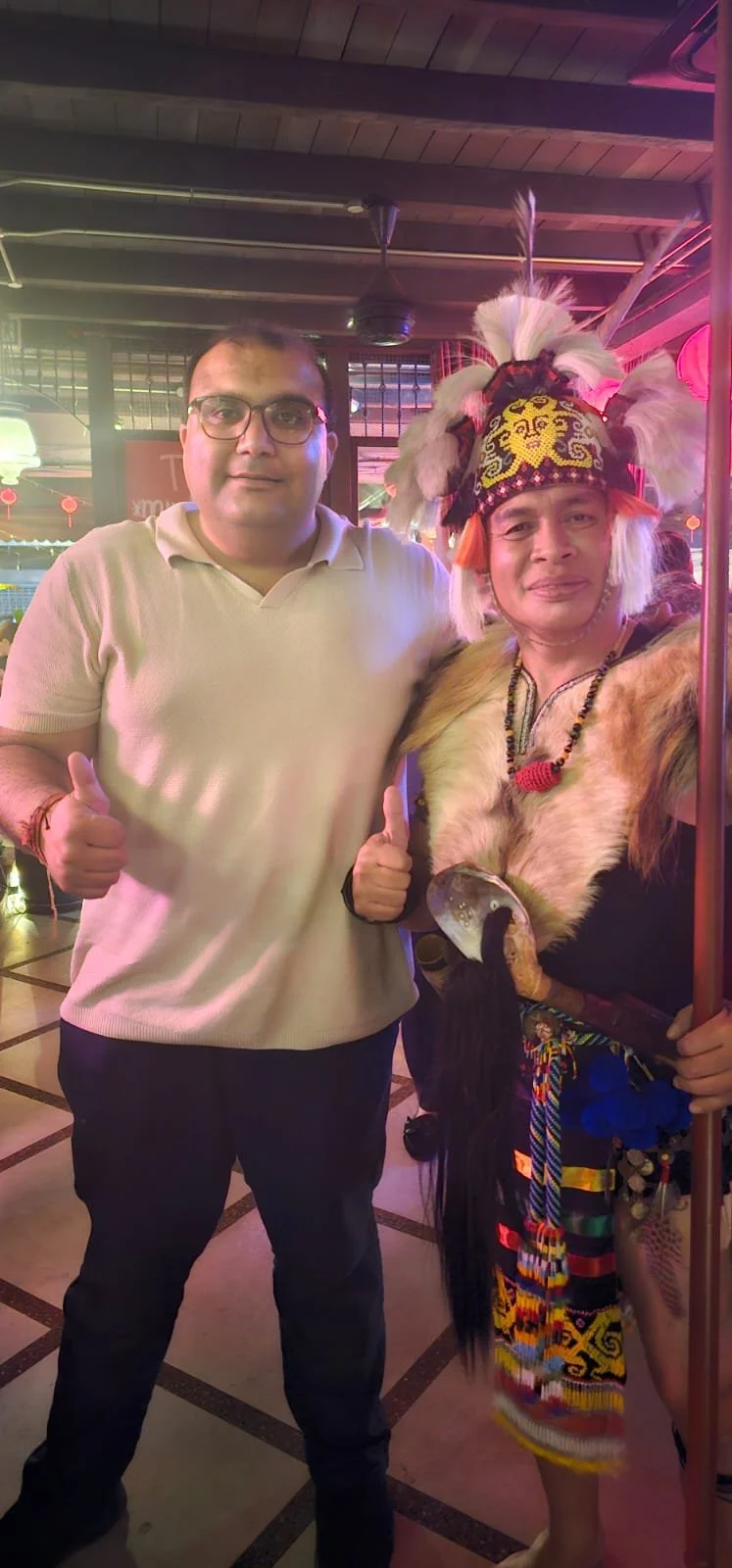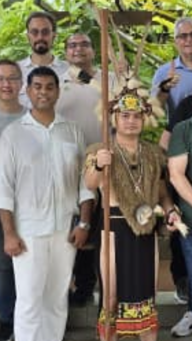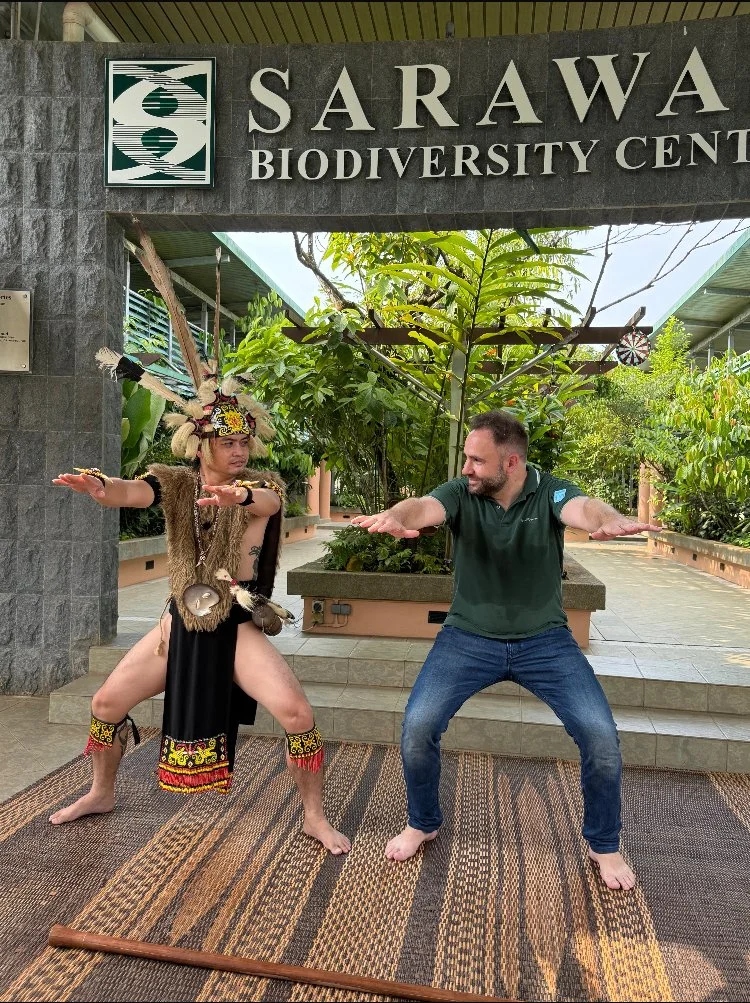 Ozan Ibrism (on the right), Managing Director of The Aroca Group, partaking in an indigenous Dayak warrior ceremony at the Sarawak Biodiversity Centre.