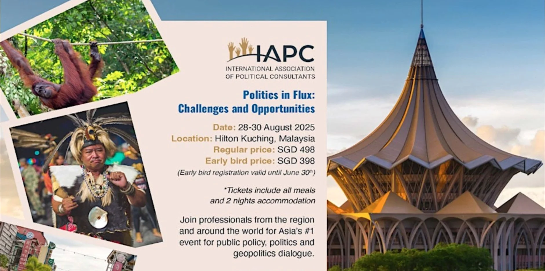 As Adviser to The Aroca Group (also a client of Thoth Impact Advisory), I had the privilege of participating in the International Association of Political Consultants (IAPC) Kuching Meeting 2025 in Malaysia, held from 28th to 30th August specifically at the Hilton Kuching, Kuching, the capital of the State of Sarawak in the Malaysia’s segment of the Island of Borneo. This regional gathering brought together over 60 public affairs professionals from across the Asia-Pacific region and beyond, providing a timely forum for examining the complex geopolitical dynamics that increasingly shape our work in impact investing, public policy and ESG advisory.