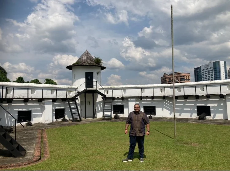 One the rooftop of Fort Magherita, where the English Brooke dynasty, i.e. “The White Rajahs” ruled Sarawak as an autonomous within the British Empire, from the late 19th to mid 20th Centuries. The Sarawak State Legislative Assembly is in the background.